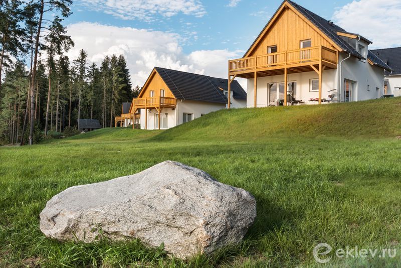 Мы предлагаем высокий уровень комфорта, современный интерьер домов (вместимость от 2 до 10 человек) с качественной меблировкой (+некоторые дома с сауной), полностью оборудованная кухня, просторная гостиная комната, большая терраса или балкон, одна или две ванные комнаты, камин. Лучшие блюда от шеф-поваров, блюда традиционной чешской кухни, возможны мероприятия в павильоне пляжного бара. Полупансион или полный пансион, завтрак - шведский стол. Бесплатное проживание одному ребёнку младше 12 лет.